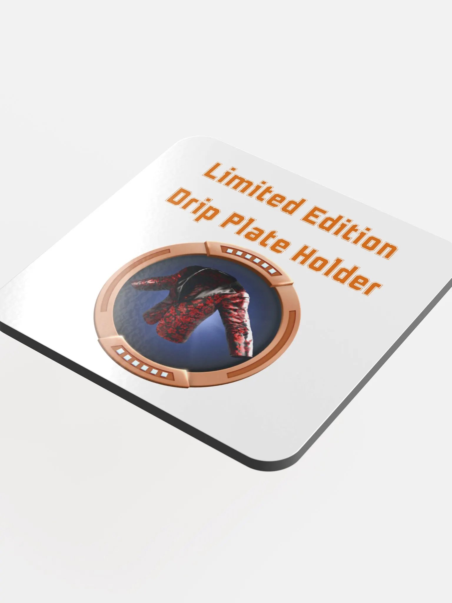 Eco-friendly cork coaster with high-gloss finish and bold limited edition drip plate holder design. Adds elegance while protecting surfaces, and mocking your friends who don't have one.